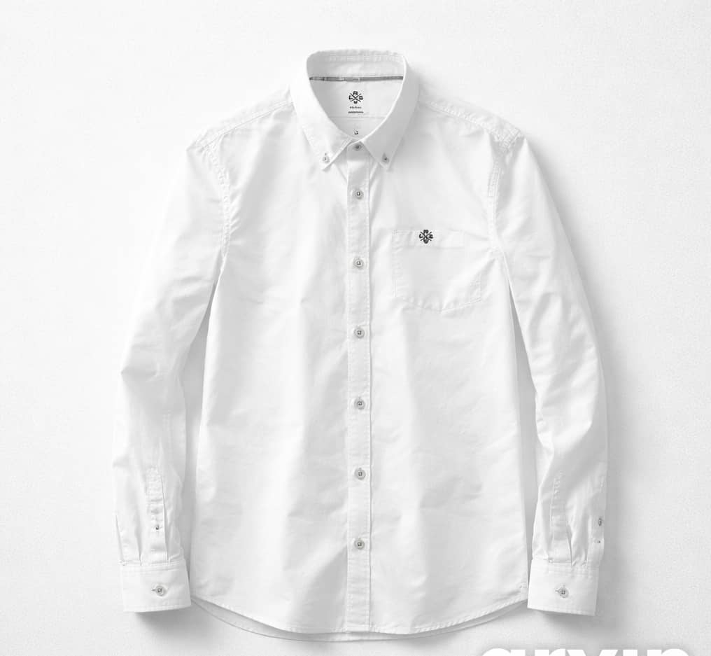 A timeless optic white Oxford shirt crafted from premium breathable cotton with a durable textured weave and a refined circular crest embroidery at the hem add a touch of heritage-inspired character to a minimalist silhouette. Designed for the modern classic man who values clean, versatile style—perfect tucked with chinos for business-casual or worn with denim and sneakers for a refined weekend look.