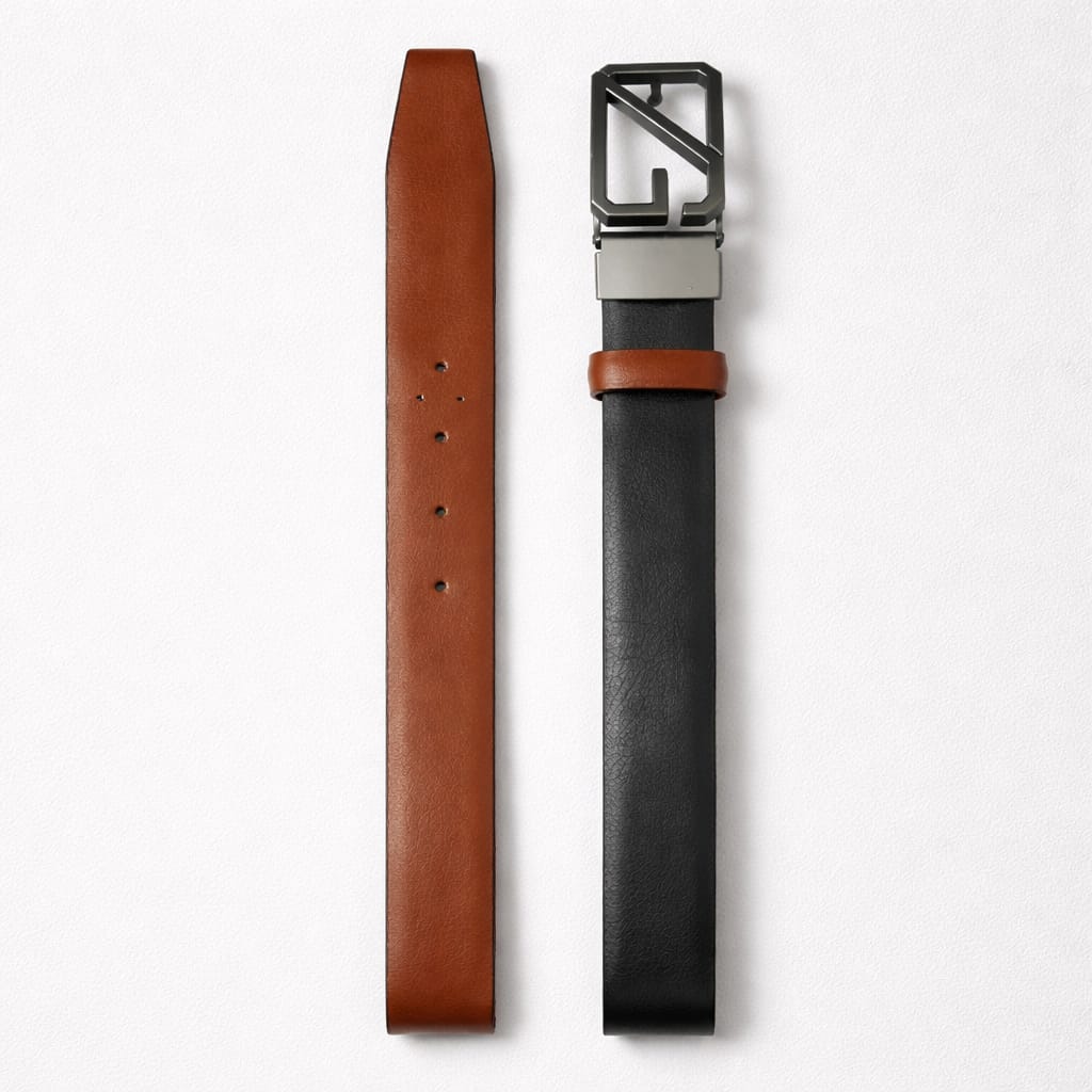 A bold black leather belt designed with a striking geometric open-frame buckle and a contrast keeper loop for added visual detail. Crafted for modern, style-forward men, this belt reflects confidence, individuality, and a sharp sense of fashion—perfect for elevating casual and smart-casual outfits.