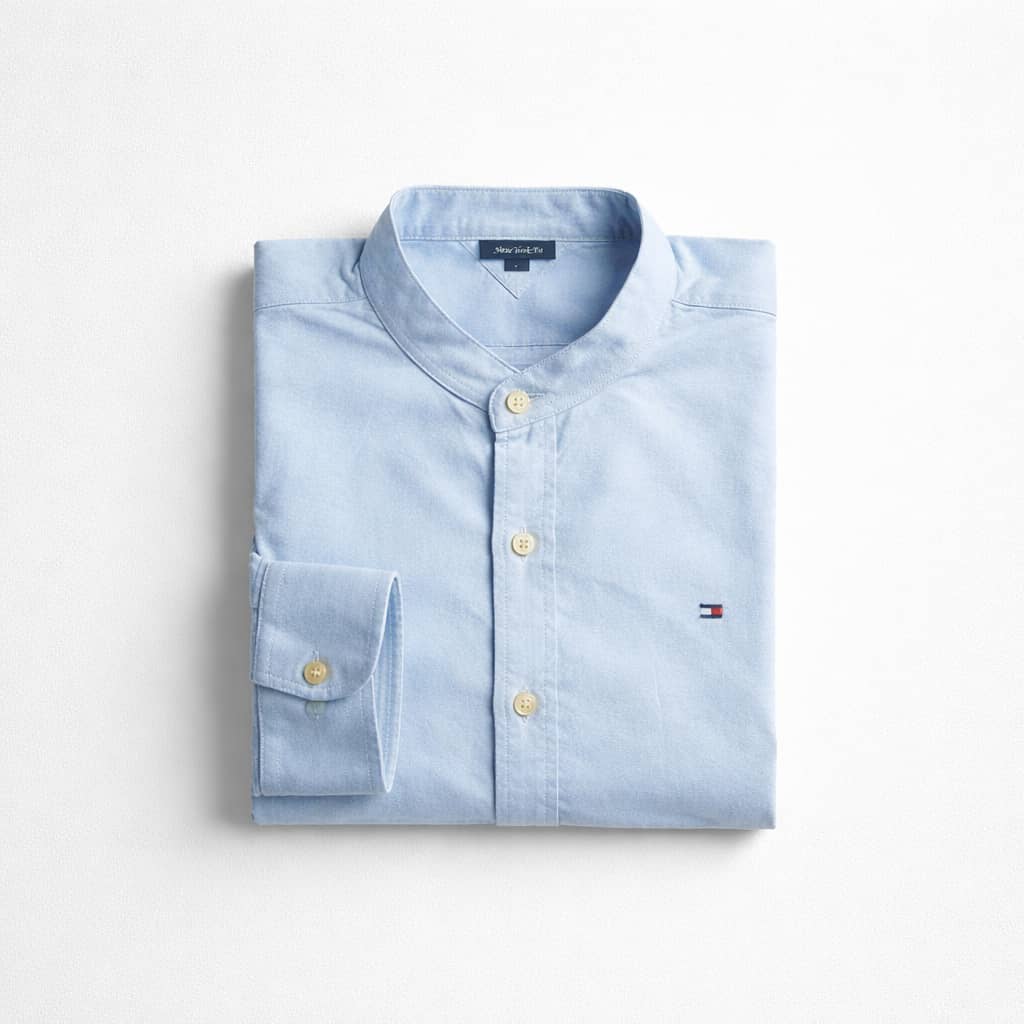 Men’s Premium Mandarin Collar Oxford Long Sleeve Shirt – Sky Blue